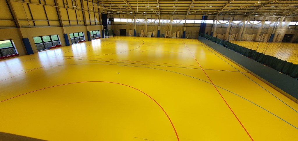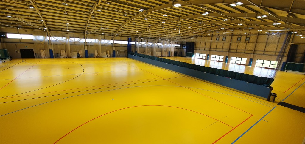 - Indoor Sports Hall housing full size indoor hockey pitch or 2 smaller pitches or 2 netball courts or 10 indoor cricket nets